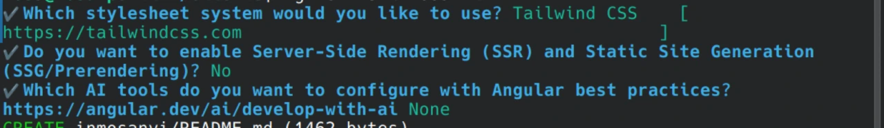 Podemos crearnos el proyecto desde Angular 21.0.1 con TailwindCSS, donde nos instala los tres paquetes: tailwindcss, @tailwindcss/postcss y postcss