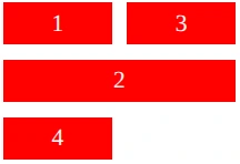 }Los elementos 1, 2 y 3 irán en la primera fila. El elemento 4, al no caber, creará una nueva fila y se colocará al principio de esta.