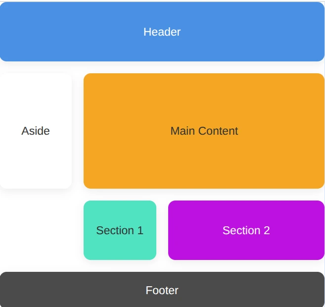 - .aside: Usa las propiedades largas para definir que debe estar en la primera columna (1 / 2) y ocupar el espacio de dos filas (2 / 4).